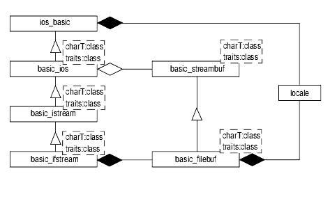 You may notice that the classes strstream, istrstream, and ostrstream are not included in this diagram, even though we describe them in the Apache C++ Standard Library Reference Guide. Sometimes called deprecated features in the standard, these classes are provided solely for the sake of compatibility with the traditional iostreams, and will not be supported in future versions of the standard iostreams.