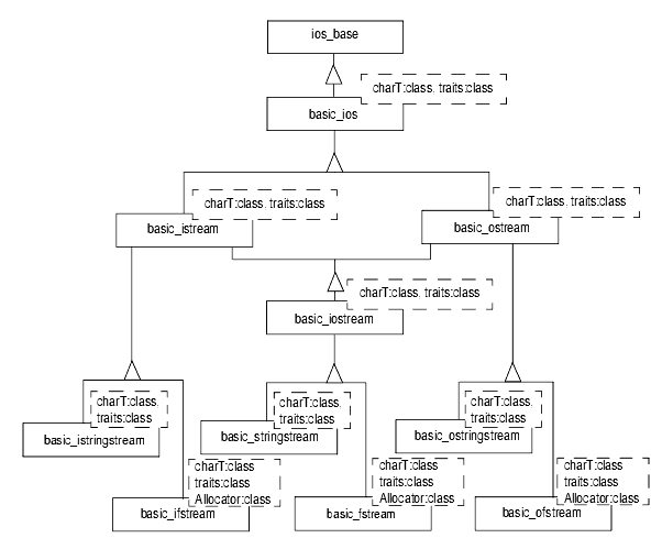 template <class charT, class traits=char_traits<charT> > basic_istream; template <class charT, class traits=char_traits<charT> > basic_ostream; template <class charT, class traits=char_traits<charT> > basic_iostream;