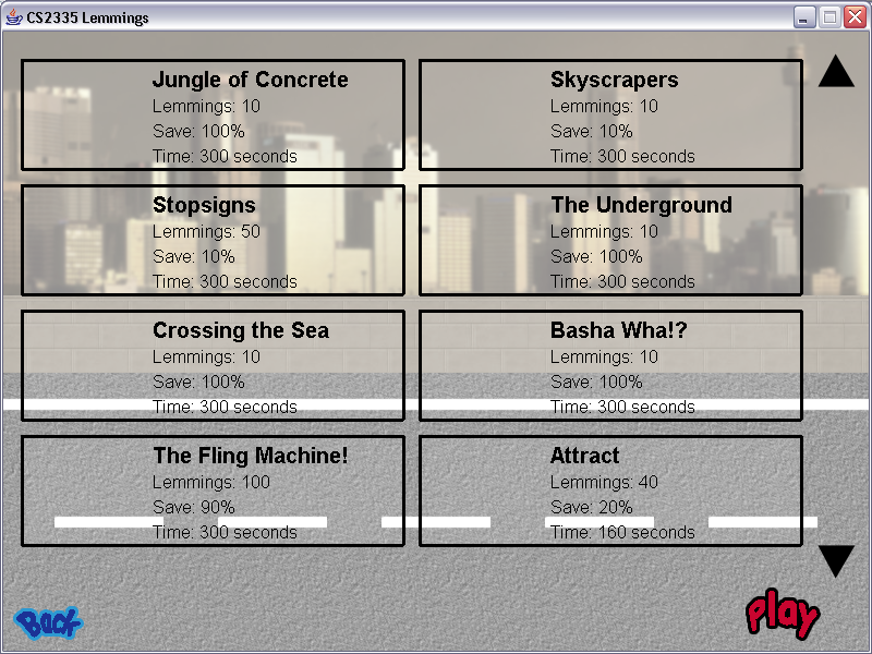 After one decides whether he wants to play multiplayer of singleplayer game one will need to select a level.