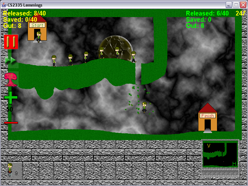 The objective of the game is to move the number of lemmings determined by the level number from the starting point on the map to the finish point before the time runs out.