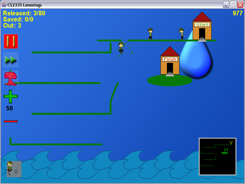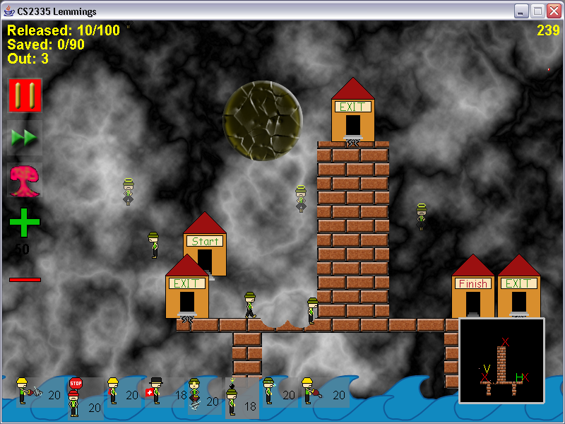 The objective of the game is to move the number of lemmings determined by the level number from the starting point on the map to the finish point before the time runs out.